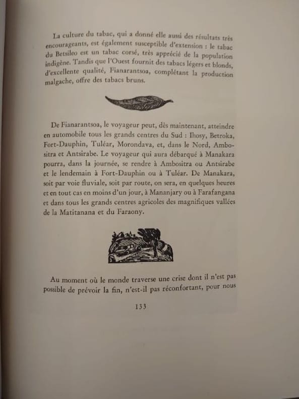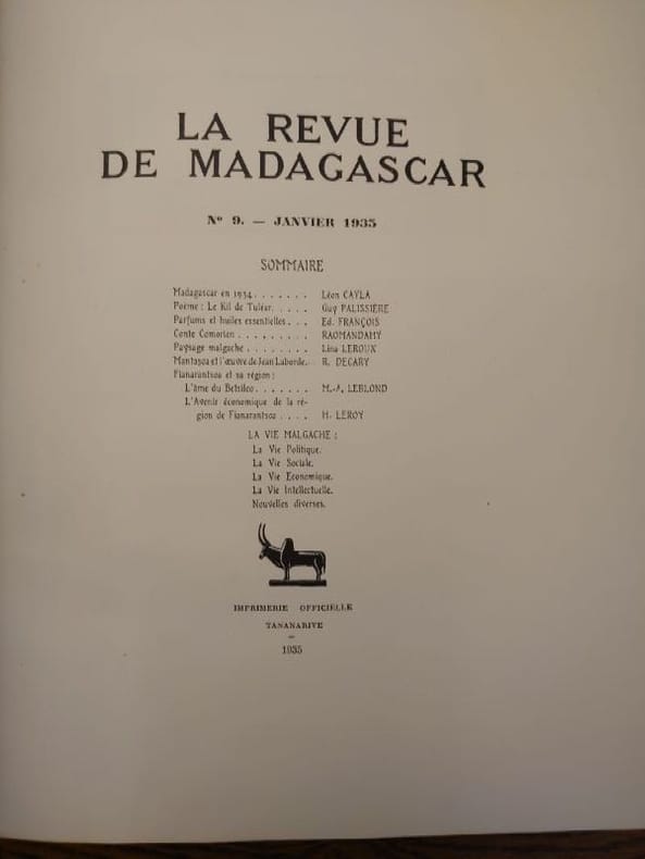 1935. Numéro 9 de janvier 1935, 171 pp. Numéro 10 d'avril 1935, 158 pp. Nombreuses illustrations photographiques. Un volume relié en demi peau de crocodile à coins. Couvrure en papier mâché à grosse fibre (reliure ou matériaux provenant de Madagascar). Couverture non conservée. Bel exemplaire très spectaculaire.