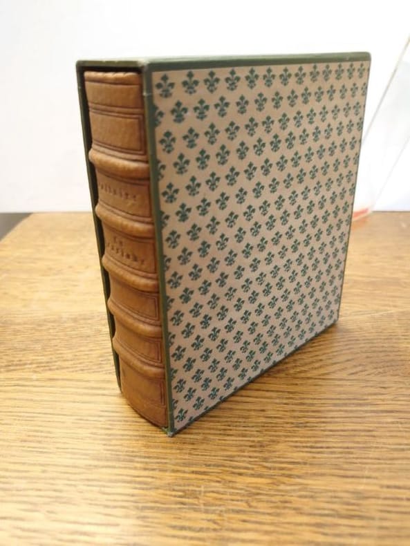 Paris, de l'Imprimerie Didot, 1819 (avec couverture de relais de l'éditeur Adolphe Delahays datée de 1855). 14 x 12,5 cm, 217 et 191 pp. Relié plein veau, dos à nerfs, titre à froid et décor de fleurs de lys à froid sur le premier plat, tête dorée, sous étui recouvert de papier décor de fleur de lys. Reliure et étui en parfait état. Des rousseurs sinon bon exemplaire sur "papier fin" et à grandes marges.