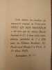 avec les vignettes de Carlègle recueil de poésie exquis qui célèbre la vie et l'œuvre du célèbre poète français Paul Verlaine. Écrit par un admirateur dévoué de Verlaine, ce recueil est une déclaration passionnée d'amour et d'admiration envers l'artiste tourmenté et talentueux. Les "Odes en Son Honneur" présentent une série de poèmes qui capturent la sensibilité poétique propre à Verlaine. L'auteur de ce recueil rend hommage à la poésie verlainienne en imitant le style, la musicalité et l'esthétique si caractéristiques de l'œuvre originale. Les poèmes explorent une gamme d'émotions, allant de la mélancolie et de la nostalgie à l'extase et à l'émerveillement, tout en suivant les thèmes et les motifs chers à Verlaine. Chaque poème dans le recueil "Odes en Son Honneur" est une immersion profonde dans l'univers de Verlaine. Les vers exquis évoquent des images vives et des paysages émotionnels riches, tout en rendant hommage à la complexité des sentiments humains que Verlaine a si habilement explorés. L'auteur de ce recueil puise dans sa propre passion et son admiration pour Verlaine pour donner vie à des poèmes qui semblent à la fois nouveaux et familiers, honorant l'héritage littéraire du poète tout en apportant une perspective personnelle unique. Les poèmes sont imprégnés d'une profondeur émotionnelle qui résonne avec les lecteurs qui sont familiers avec l'œuvre de Verlaine, tout en offrant une porte d'entrée aux néophytes qui découvriront peut-être le poète à travers cette exploration poétique passionnée. En somme, "Paul Verlaine: Odes en Son Honneur" est un recueil poétique qui célèbre l'héritage littéraire de Paul Verlaine d'une manière passionnée et artistique. L'auteur de ce recueil parvient à capturer l'essence de Verlaine tout en y apportant sa propre touche personnelle, créant ainsi une expérience poétique immersive et émouvante pour les lecteurs. vol broché, 280x170, couvertures rempliées, 70pp. Très bel exemplaire à l'état neuf. Exemplaire sur vélin à la cuve des papeteries d'Arches, 477/490 Paris, Chez L'Imprimeur Léon Pichon, 1921 ref/20