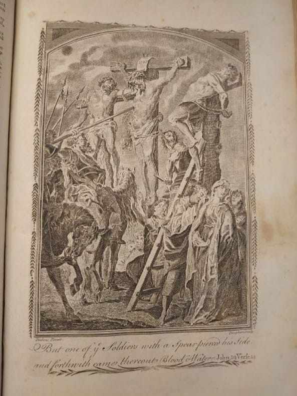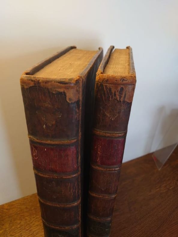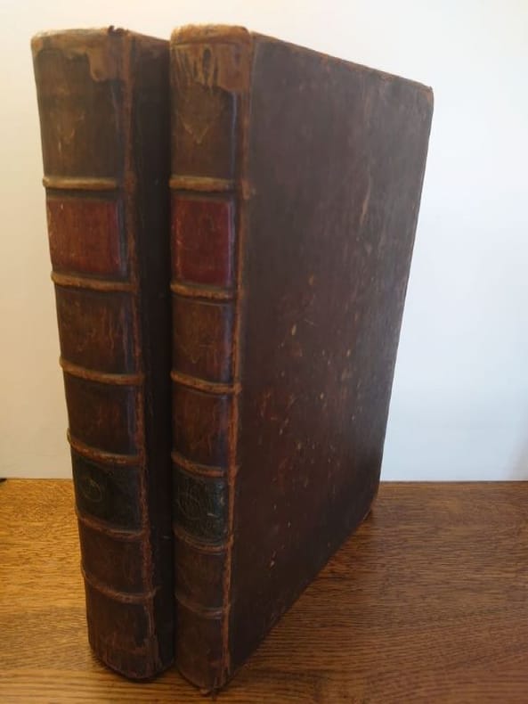 Newcastle, M. Brown. MDCCLXXXVII (1787). 41 x 27 cm, 4 ff. C - 9 M pour le premier volume et 9 N à 13 B pour le deuxième volume avec 29 ff. de concordance. Un frontispice et 32 planches gravées dans le tome I, un frontispice et 16 planches gravées dans le tome II. Reliés plein veau d'époque, dos à nerfs, pièces de titre rouge, reliures légèrement usées, traces de frottements sinon bons exemplaires. Une planche avec manque marginale, de nombreuses petites déchirures marginales sur de nombreuses planches sinon bel état.