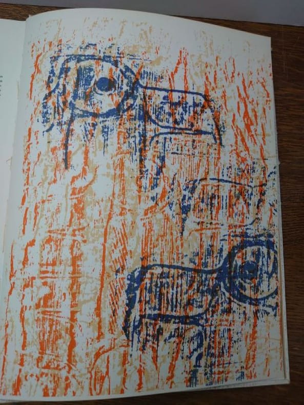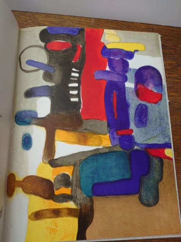 Paris, Hermann, 1963. 33 x 25,5 cm, 388 pp. Relié cartonnage d'éditeur. Cartonnage légèrement usée sinon bon exemplaire. Très nombreuses illustrations en noir et en couleurs. Avec notamment Sérullaz : Les premières décorations murales de Delacroix. Francis Ponge : De la nature morte et de Chardin. M. Butor : Claude Monet ou le monde renversé, Le Maitre de Moulins. Jean Arp, etc... Bien complet des 3 gravures hors texte originales : Lithographie originale d'Estève. Composition.Estampille originale de Hadju : Deux personnages et Lithographie originale de Max Ernst : Oiseaux.