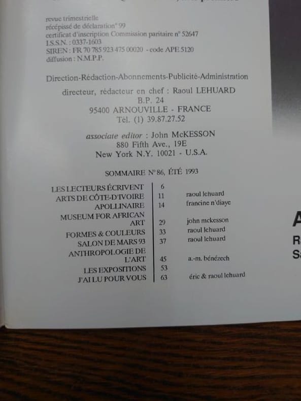 27 x 21 cm, 70 pp. Plaquette agrafée. Bon exemplaire. Texte : Arts de la Côte d'Ivoire au musée Barbier-Mueller.
