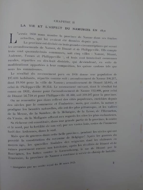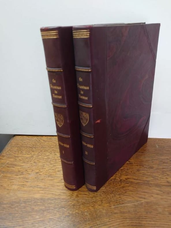 Éditions Ad. Wesmael-Charlier, Namur, 1930. 25,5 x 20 cm, 368 et 362 pp. Deux volumes reliés demi-chagrin à coins, dos à nerfs, titres dorés et blason de Namur au dos. Quelques traces de frottements et rousseurs sur les tranches, sinon bon exemplaire. Ex dono manuscrit sur une page de garde : "Exemplaire offert à Monsieur A. Huart, auditeur militaire, en remerciement pour sa gracieuse collaboration".