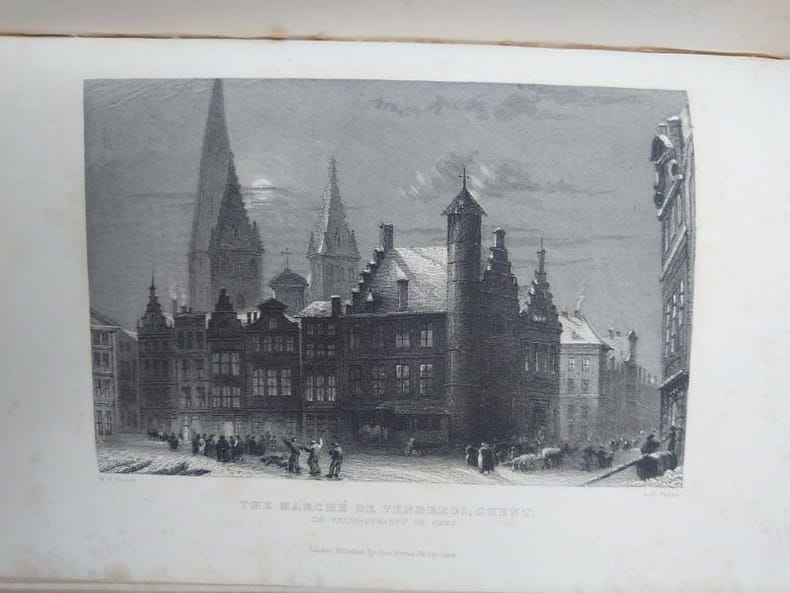 London, George Virtue, sans date [1837]. 24 x 15,5 cm, 204 pp. Relié cartonnage d'éditeur demi chagrin, dos lisse richement décoré, toutes tranches dorées. Reliure légèrement usée, traces de frottements, coiffe supérieur partiellement arasée. Une page de titre gavée, 61 gravures hors-texte et une carte dépliante.