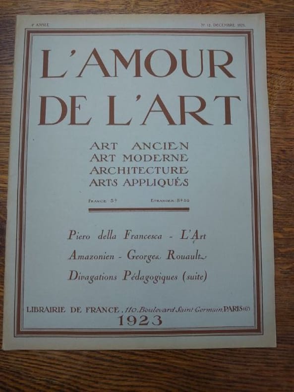 Librairie de France, 1923. 4e Année. Décembre 1923. 32 x 25 cm, 32 pp. Plaquette agrafée. Bon exemplaire. Pierro della Francesca. L'Art Amazonien. Georges Rouault.