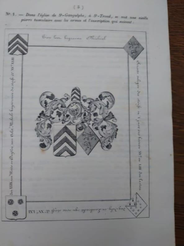 Gand, Gyselinck 1845 803pp. avec 311 gravures en bl/n (des blasons, inscriptions funéraires, armoiries, etc.), Edition originale de 1845, 28cm., reliure cart. (dos en cuir avec titre et nerfs dorés, coins et bords avec traces d'usage), feuilles de garde marbrées, avec ex-libris héraldique de baron de Moreau, texte et intérieur sont frais, petite tache d'encre sur les trois premières feuilles (pas dans le texte), rare édition originale, poids: 1.5kg., B115480