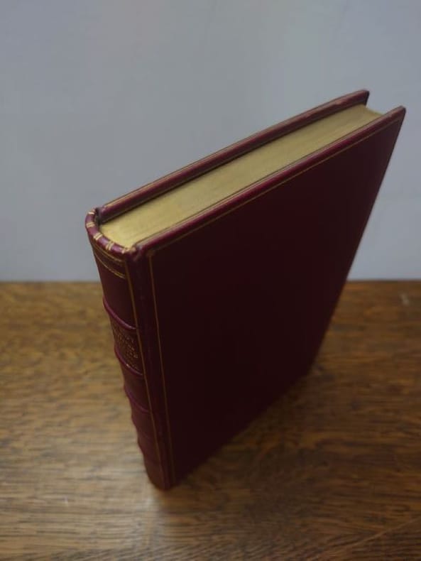 Paris, Albert Savine, 1890. 17 x 11,5 cm, 222 pp. Relié plein maroquin rouge à longs grains, dos à nerfs ornés de pointillées, titre doré, tête dorée, encadrements d'un filet doré sur les plats, encadrements de triple filets dorés sur les contreplats, cannelures dorées sur les coiffes, filets dorés sur les coupes, couvertures conservées. Quelques traces de frottements sinon très belle reliure signée A. Claesens Fils. Édition originale.