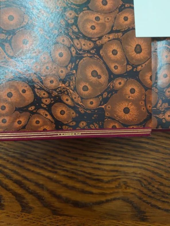 Léon Bloy, Christophe Colomb devant les Taureaux. Paris, Albert Savine, 1890. Petit in-12, [6]-VI-225p. Edition originale. Cachet de remise en vente de P.V. Stock sur la couverture. Demi-chagrin rouge à coins, dos à nerfs, tête dorée, première couverture conservée. Petits accrocs sur les mors. Bon exemplaire.