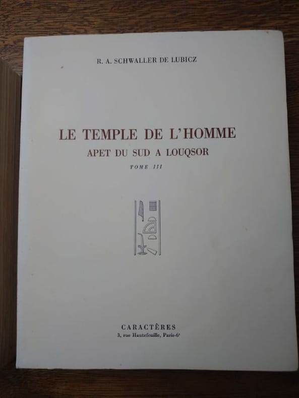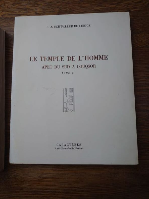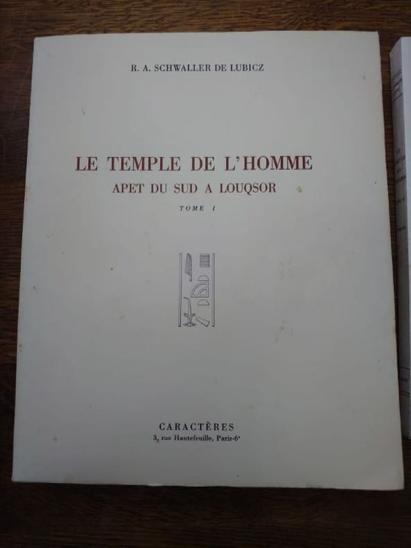 Dervy Dervy 1999. 2 volumes in-4 carré reliés plein cartonnage éditeur illustré sous étui illustré. 776 + 410 pages. 197 + 300 figures dans le texte. Présentation de l'éditeur : Cet ouvrage, écrit après une dizaine d'années de recherches au temple de Louxor, présente un cas indiscutable de la directive symbolique appliquée à l'architecture d'un des plus célèbres sanctuaires de l'Egypte pharaonique. Basé, sur des relevés d'une minutie jamais atteinte auparavant dans la pratique archéologique, le livre de R.A. Schwaller de Lubicz analyse les agrandissements successifs du temple de Louxor, en les mettant en rapport avec les différents âges de l'homme. Le temple entier apparaît alors comme l'image de l'homme Microcosme, c'est-à-dire comme la projection morphologique des principes cosmiques situés fonctionnellement dans les différents lieux du ciel. Écrit par un philosophe, l'ouvrage atteindra, par toutes les précisions qu'il apporte sur la sagesse de l'Orient Ancien, un public dépassant de beaucoup le seul cadre de l'égyptologie, qu'il oriente d'une façon entièrement nouvelle. Sa lecture s'imposera à tous ceux qui s'intéressent aux connaissances géodésiques, astronomiques et physiologiques de l'Antiquité. Parfait état