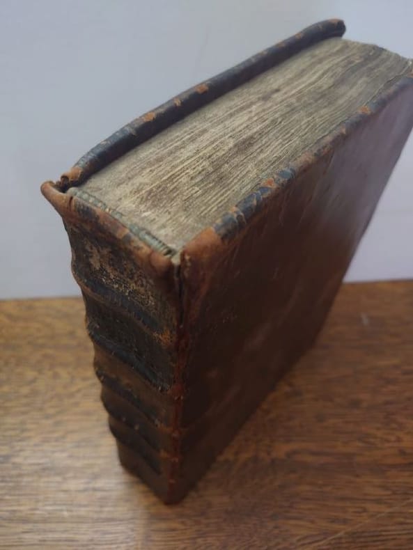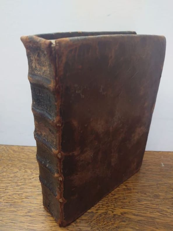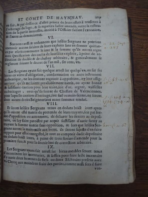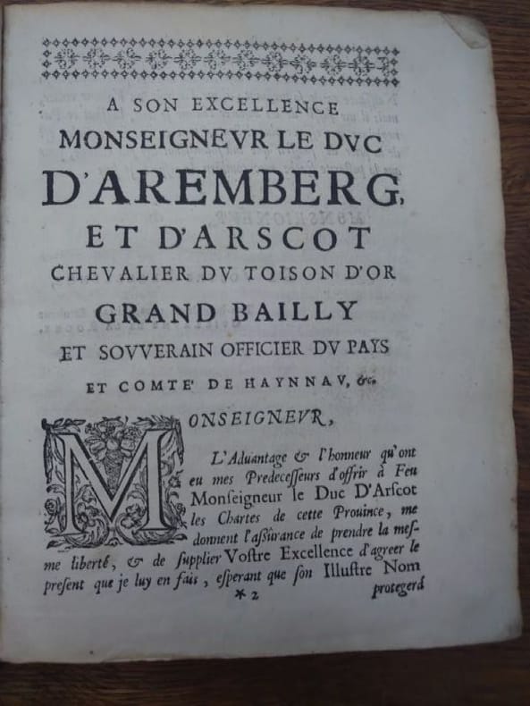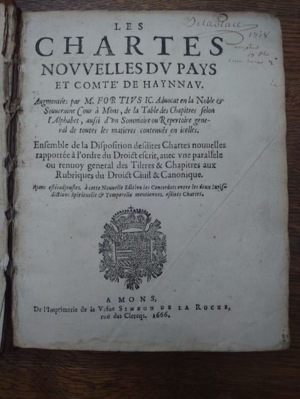 A Mons, de l'imprimerie de la Veuve Simeon de La Roche, 1666. 20,5 x 16,5 cm, 3 ff. 397 pp.et 76 ff. non chiffré. Relié plein veau d'époque, dos à nerfs, caissons ornés. Reliure usée mais encore solide, mors partiellement fendu, coins émoussés. Annotations manuscrites sur les pages de garde et dans tout le livre, annotations érudites d'époque. Une gravure hors texte : arrmes du Hainaut gravées sur cuivre.