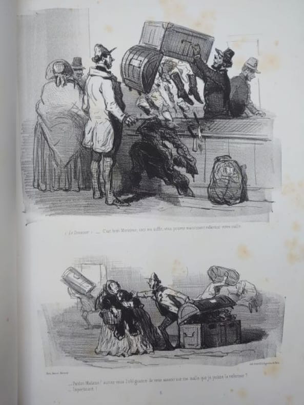 Paris, chez Martinet, sans date [circa 1950]. 34,5 x 27 cm, une page de titre lithographiée et 20 planches lithographiées, en noir et blanc, proposant au total 47 sujets y compris celui sur le titre. Relié cartonnage d'éditeur demi toile. Cartonnage légèrement taché, des rousseurs sinon bon exemplaire. Envoi autographe signé du "father of the author" le Comte de Noé.