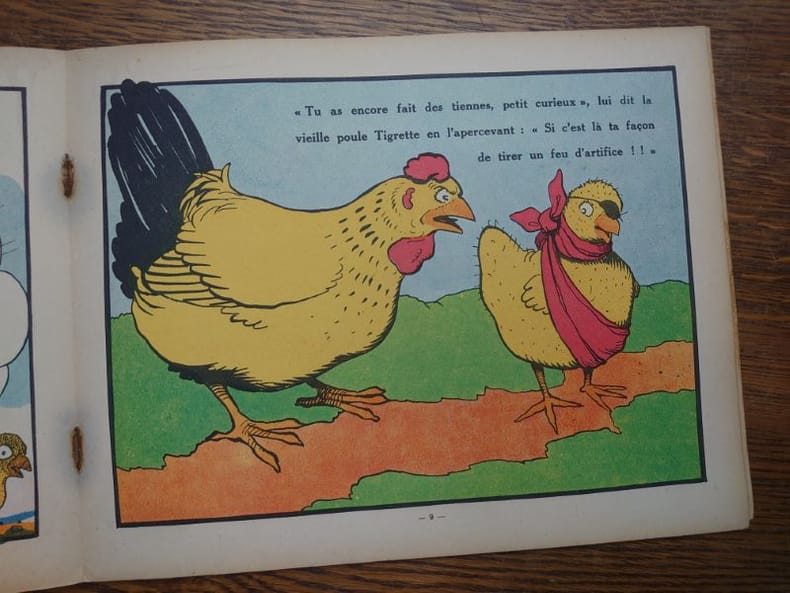 Paris. Garnier. 1931. 16 pp. In-8 à l'italienne. Cartonné. Etat correct. 1 volume. ÉDITION ORIGINALE.Édition épuisée. Livre très rare.D'autres publications de cet auteur sont disponibles sur le catalogue de la librairie.Album pour enfant racontant les aventures d'un petit poussin assez curieux et aventureux pour son âge. Chacune des expériences que fait ce dernier est soigneusement - et joliment - décrite par le biais des planches en couleurs réalisées par l'auteur lui-même.