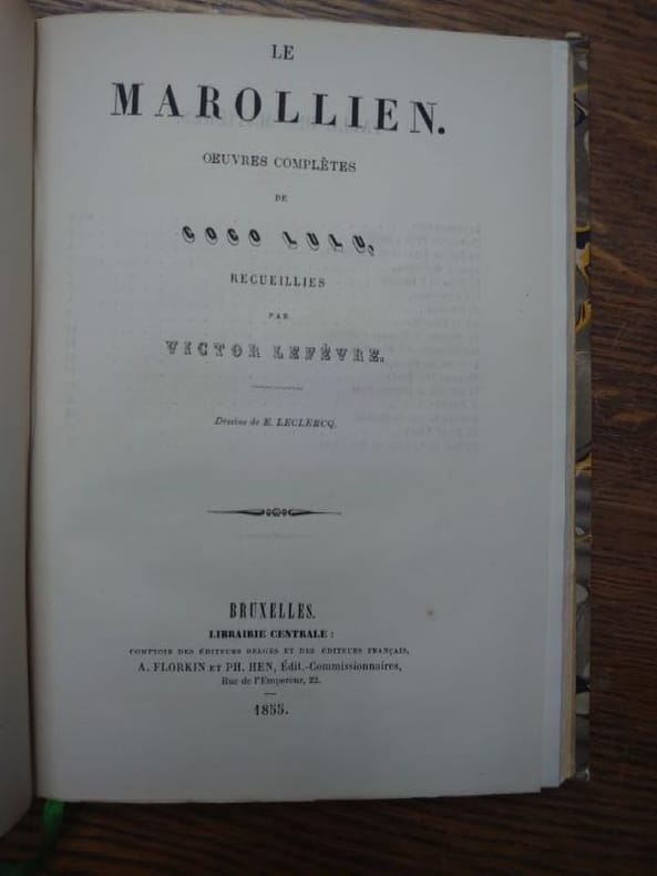 Bruxelles, Librairie Centrale, 1855. 18 x 13,5 cm, 46 pp. Relié demi maroquin, dos lisse, titre doré en long, couvertures conservées. Bel exemplaire.