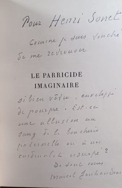 Paris, Editions de la Pléiade, J. Schiffrin, 1930. 21 x 15,5 cm, 197 pp., 2ff. Relié plein maroquin bordeaux doublé, dos à nerfs, caissons ornée de filets à froid, encadrements de filets à froid sur les plats, titre doré, filet sur les coupes, toutes tranches dorées, contreplats en maroquin bordeaux, gardes de soie moirée violine, sous étui bordé. Une feuille de garde se détache sinon très bel exemplaire. Reliure signée Semet et Plumelle. Édition originale, celui-ci un des 30 exemplaires numérotés sur Japon Impérial (premier grand papier). Bel envoi a.s. de Marcel Jouhandeau.