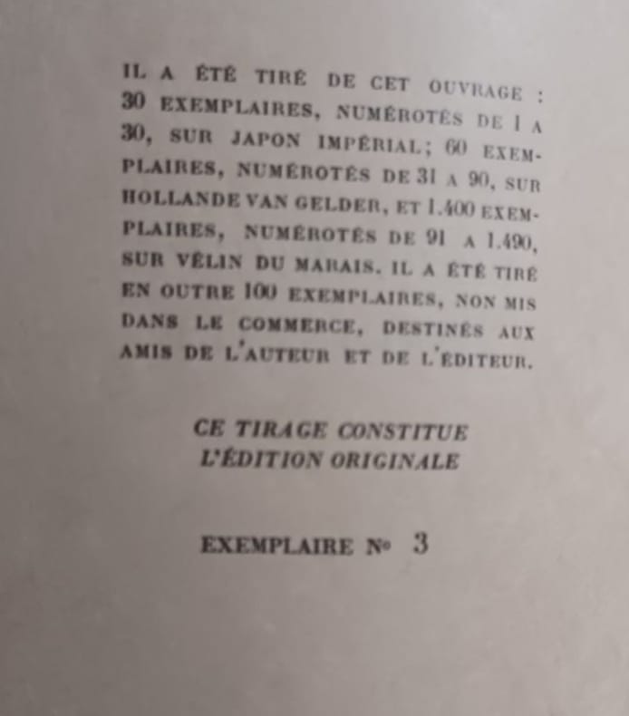 Edition originale, un des exemplaires numérotés sur vélin du Marais. Agréable exemplaire. - Photographies et détails sur www.Edition-Originale.com -
