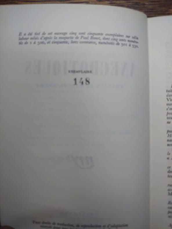 Paris, André Balland et Jacques Lecat 1965, 1966, 225x150mm, reliure d'éditeur. Percaline verte. Auteur et titre dorés au dos. Tranche supérieure doré. Exemplaire composé en Baskerville corps 9 et tiré sur papier vergé, numéroté n° 2094 / 5500. Bel exemplaire.