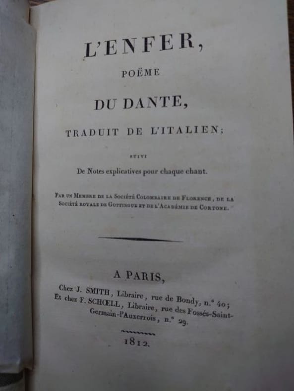 A Paris, chez J. Smith et chez F. Schoell, 1812. 20 x 13,5 cm, xxiv-446 pp. Un frontispice gravé par Forsfell. Relié demi-veau, dos lisse orné, titre doré. quelques traces de frottement sinon bon exemplaire.