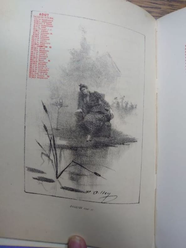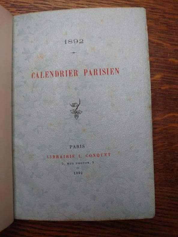 Paris, Librairie L. Conquet, 1892. 16,5 x 11,5 cm, 64 pp. Relié demi-percaline à coins, dos lisse, pièce de titre, couvertures et dos conservés. Reliure légèrement usée, traces de frottements, coins émoussés sinon bon exemplaire. Exemplaire sur papier vélin non mis dans le commerce. Exemplaire offert à Madame Joltrain, signé par l'éditeur.