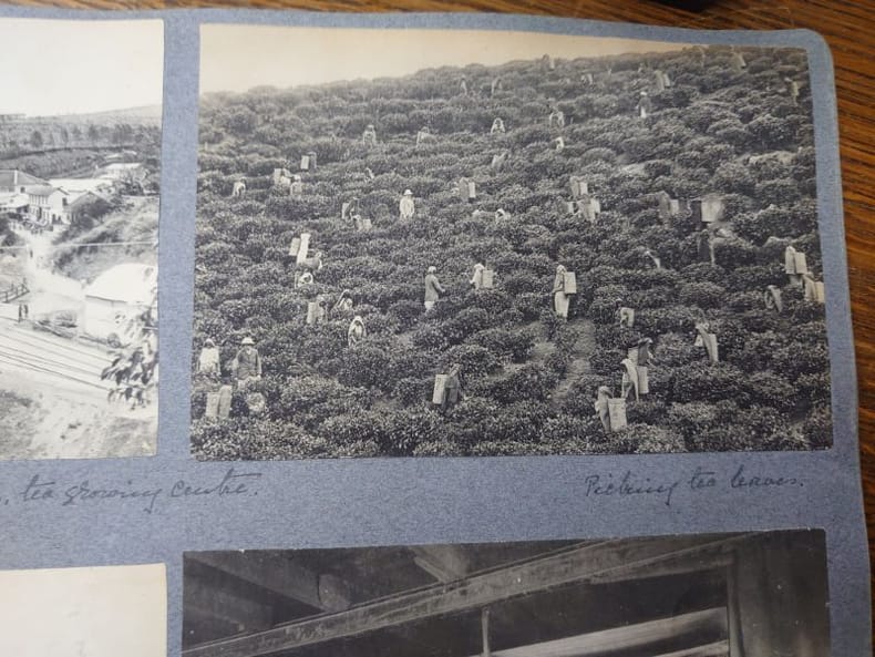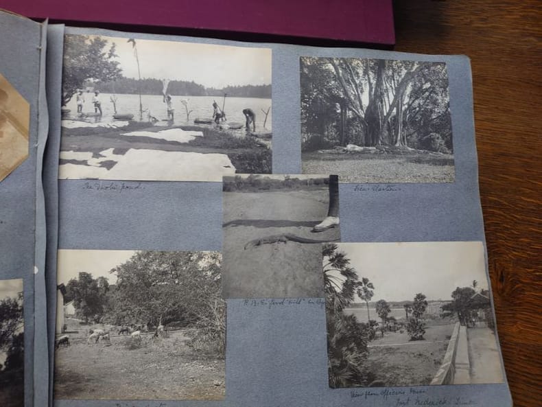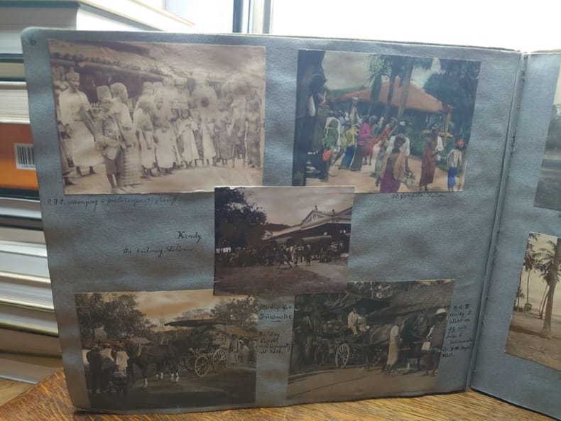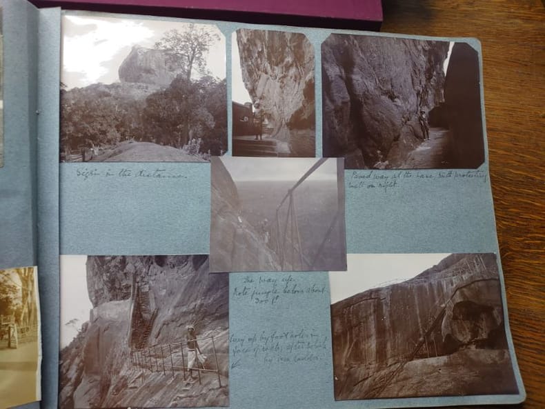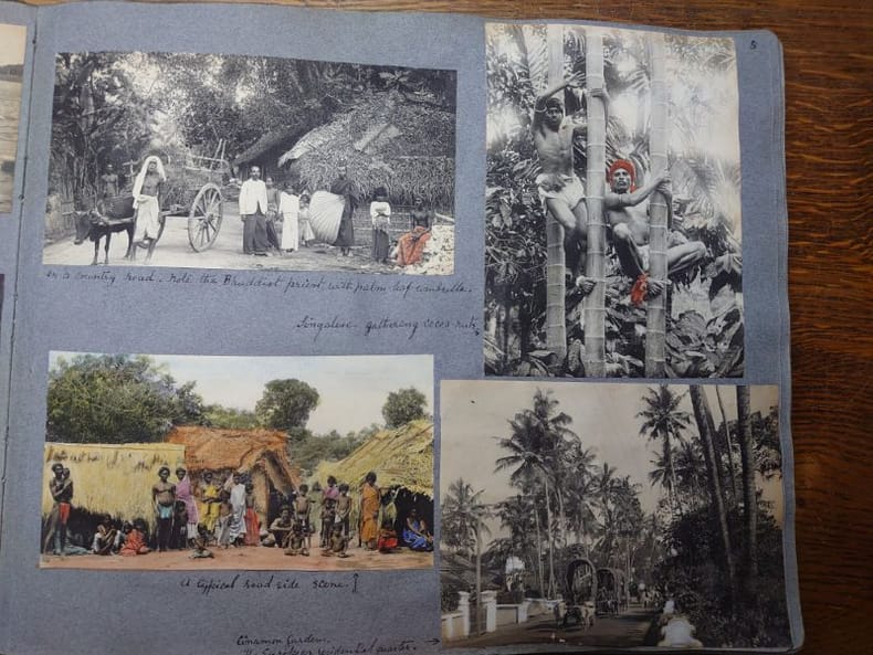 Un album de 138 photographies datant des années 1920 réalisées lors d'un voyage à Ceylan par Mary Constance Robinson-Embury née Clayton Granny.Certaines photos sont colorisées. Photographies de Colombo, Kandy, Trincomalee, Pussellawa, Matale. De nombreuses photographies d'habitants, de paysages, une photo de chasse, une récolte de thé.