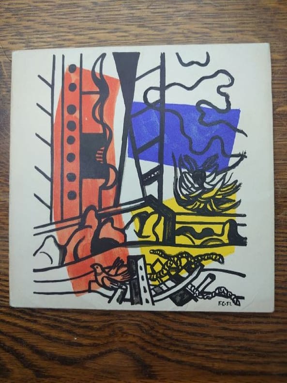 Galerie L. Leiris, Paris, 1958. 17 x 17 cm, non paginé. Broché, couverture rempliée illustrée d'une composition en couleur de Fernand Léger, lithographiée par Mourlot. Édition originale. Iconographie en noir et en couleur. Bon exemplaire.