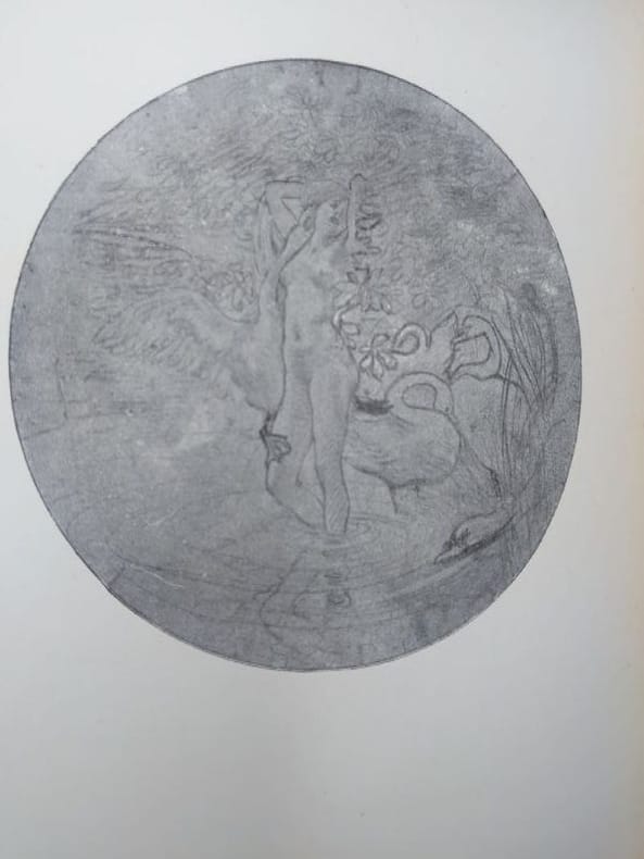 Paris, Librairie illustrée, 9, rue des Beaux-Arts, 1896. Tome 1 : 130 pp- 2ff (table des matières, achevé d'imprimé) - xxii pp. de catalogue sur papier vert, plus un feuillet bulletin d'abonnement. Tome II : 156 pp. - 2 ff (table des matières, achevé d'imprimé) - xvi sur papier beige (catalogue Le Centaure). COLLECTION COMPLÈTE DE CETTE SUPERBE REVUE LITTÉRAIRE ET ARTISTIQUE. Elle ne connut que deux livraisons suivies chacune d'un supplément imprimé sur papier vert ou beige.Les deux tomes sont reliés en un volume plein papier imitation vélin, dos lisse, titre doré. Reliure très légèrement usée sinon bel exemplaire. Les couvertures papier et percaline conservées. Complet des 14 gravures originales hors texte, (avec serpentes légendées),dont 6 lithographies de Jacques-Emile Blanche, Charles Léandre, Maxime Dethomas, Armand Point, Henri Héran et Paul Ranson, un vernis mou de Félicien Rops, deux eaux-fortes de Gustave Leheutre et d'Albert Besnard. Collection complète en deux numéros de cette luxueuse revue symboliste fondée par André Gide, Pierre Louys et Paul Valéry.
