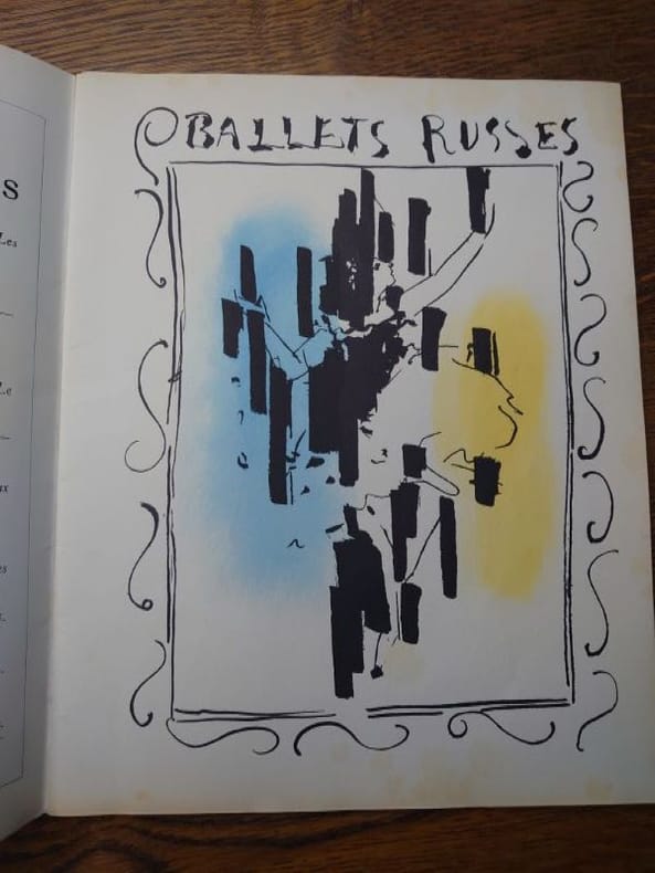 Programme officiel dont les dessins de la couverture et du programme -au nombre de six- sont de Pablo Picasso. Le répertoire présenté se compose de, l'astuce Féminine, Pulcinella, Le Lac des Cygnes, Le Tricorne, La Boutique Fantasque, Narcisse, Le Pavillon d'Armide, Le Mariage d'Aurore, Les Femmes de Bonne Humeur... De nombreuses photographies en noir des danseurs illustrent le programme. Très légères usures et infimes salissures.
