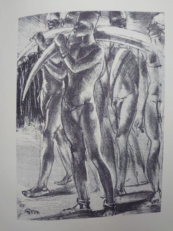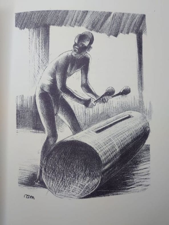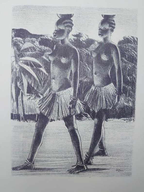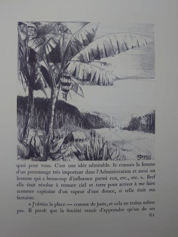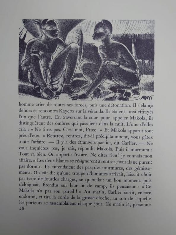 Liège, Union liégeoise du livre et de lestampe, 1934.33 x 25 cm, En feuilles, couv. imprimée et rempliée, chemise et emboîtage déditeur. Un des 75 exemplaires sur vélin à la forme Van Gelder destinés aux membres de lunion liégeoise (n°39 imprimé pour Henry Leclercq). Illustré de 41 lithographies de Mambour (complet). Étui avec de légères traces de frottement, exemplaire non coupé et intérieur très frais. Formé à lAcadémie des Beaux-Arts de Liège, Auguste Mambour, second prix de Rome en 1922. Il séjourne au Congo Belge de 1923 à 1926. Ce séjour sera déterminant pour lensemble de son oeuvre. En effet, tenté par lexpérience cubiste il en trouve un écho dans les « Sculptures vivantes » quil contemple en Afrique.