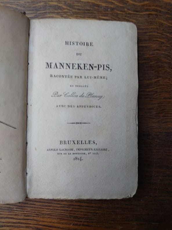 Bruxelles, Arnold Lacrosse, 1824. 15,8 x 9,5 cm, 192 pp. Relié bradel plein papier, pièce de titre. un mors partiellement fendu sinon bon exemplaire. En frontispice gravure colorée du Manneken Pis.