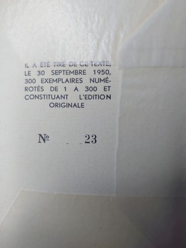 [Bruxelles], Galerie saint-Laurent, 1950. 14 x 11 cm, 2 ff. non paginé. Plaquette agrafée en bel état. N°1 de la collection "Points de repère" publié à l'occasion de cette exposition. Édition originale, tirée à 300 exemplaires numérotés. Plaquette assez rare car les trois quarts du stock ayant disparu à la suite d'une inondation dans les caves de la galerie.