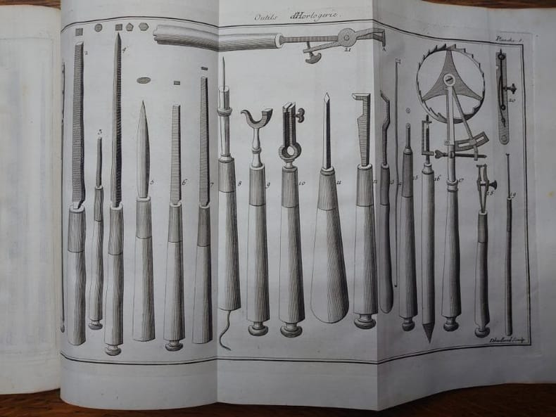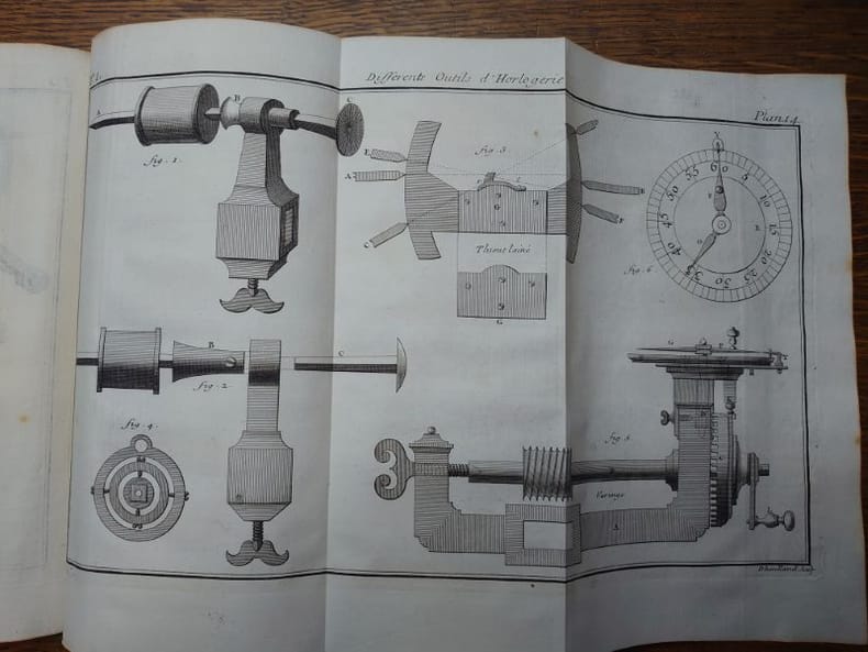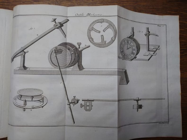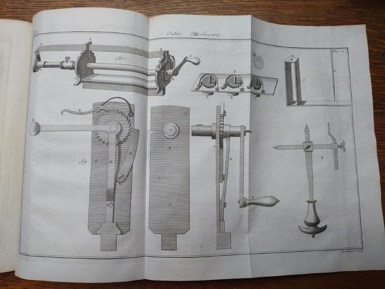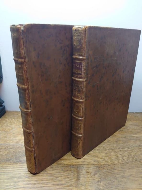 A Paris, chez Samson, 1767. Deux volumes, 26,5 x 20 cm, 11 ff. - 176 pp. 50 planches dépliantes et pagination continue 177 - 400 pp. - 1 ff., 41 planches dépliantes. Reliés pleine basane blonde, dos à nerfs ornés, pièces de titre, tranches rouges. Reliure de lépoque. Mors du tome I partiellement fendu mais reliure solide, mors du tome II fendus sur 4 cm mais reliure solide, coiffes du tome I arasées, coiffe sup. du tome II arasée, petits trous sur la page de titre du tome II, sinon bons exemplaires. Exemplaire complet des 91 planches gravées. Bon exemplaire de la deuxième édition, après la première publiée en 1741.