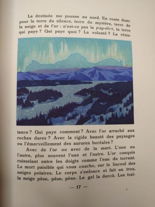 Paris Editions Mornay 1928 In-4, demi-maroquin crème à coins, plats de papier marbré, dos sans nerfs portant une pièce de titre en maroquin noir; doublures et gardes de papier noir et or, tête dorée, non rogné, couverture illustrée.Ce livre illustré en couleurs par Clarence Gagnon comporte 36 grands in-texte et de très nombreuses petites vignettes, lettrines et culs-de-lampe. Tirage limité à 725 exemplaires numérotés. Un des 650 exemplaires sur vélin de Rives.