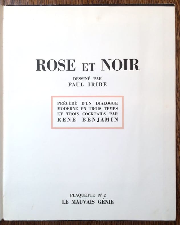 Par l’intermédiaire de Draeger, Iribe était en contact avec la maison Nicolas pour la publication de plaquettes publicitaires. Trois plaquettes paraîtront à un an d’intervalle. “Avec “Rose et Noir”, le second album Nicolas, Iribe utilise les ressources de la photographie pour traiter de façon originale ses propres dessins. [...] C’est sans doute avec les planches “Rose et Noir”, qu’Iribe obtient à New York, en mars 1931, le second prix d’un concours de photographie publicitaire.” Bon état d’occasion