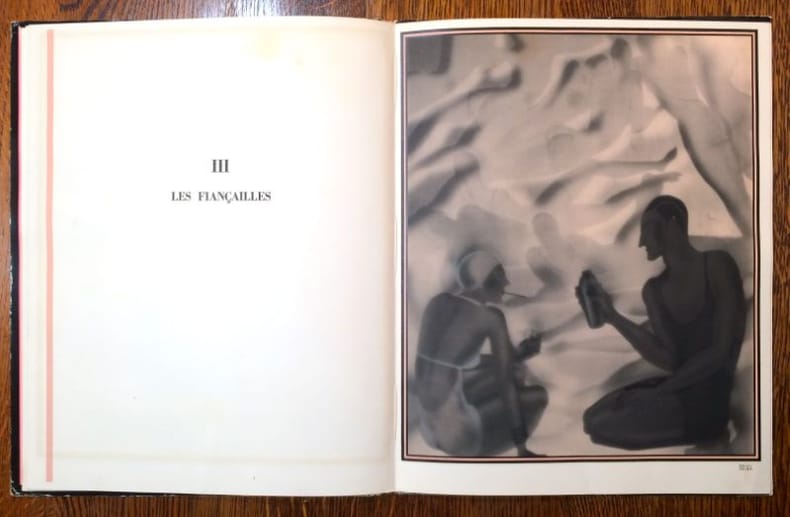 Paris, Etablissement Nicolas/Impression Draeger, 1931, 320x260mm,, broché, 9 planches de Paul Iribe. Quelques traces du temps sur la couverture. Intérieur de toute fraîcheur. Iribe utilise les ressources de la photographie pour traiter ses propres dessins. Cette publication sera primée à New-York lors d'un concours international.