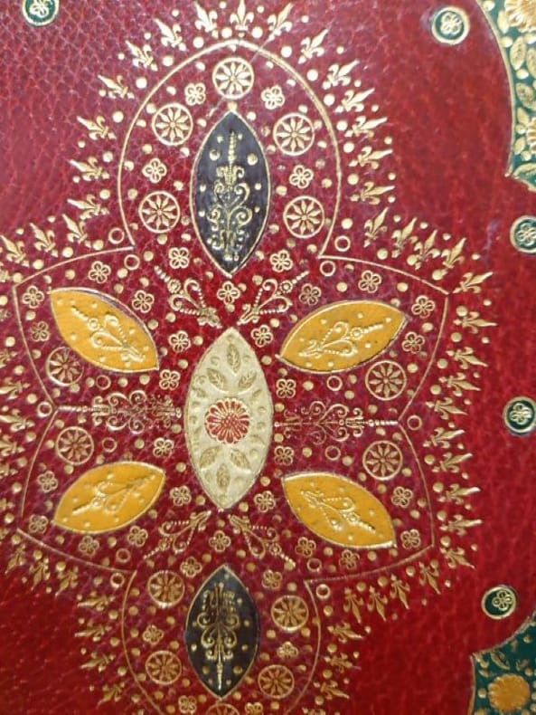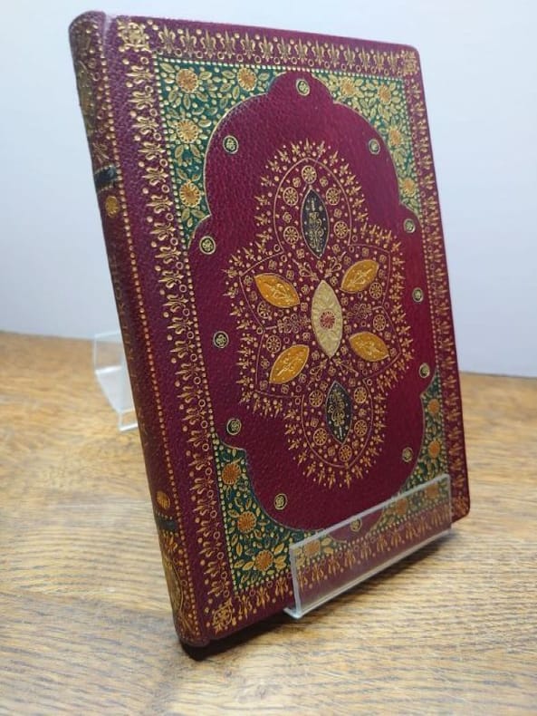 Bruxelles, P. Lacomblez, 1898. 19,5 x 13 cm, 149 pp. Reliure plein maroquin grenat, dentelle droite fleurdelysée dorée cernant les plats, grand décor floral stylisé doré et mosaïqué au plat supérieur, dos lisse avec nom dauteur doré en long cerné dun décor doré et mosaïqué en tête et queue, encadrement de dentelle dorée sur les contreplats, tranches dorées (décharges sur les gardes blanches), couverture et dos non conservés. Superbe exemplaire signé Best & Co et S.E. Aurifex [alias Sir Edward Sullivan]. Édition originale de ce témoin de la poésie symboliste en Belgique. Tirage à 400 ex., un des 385 sur vergé du Marais (n° 380 paraphé par léditeur). Réf. Grisay 126. Provenance : Sir Edward Sullivan (1852-1928), fils dun chancelier dIrlande, collectionneur, historien de la reliure et relieur amateur. Il faisait relier ses livres par un professionnel puis en réalisait lui-même le décor quil signait «E.S. Aurifex»; et John Arthur Brooke à Fenay Hall (ex-libris).