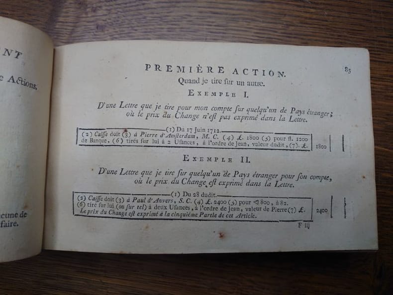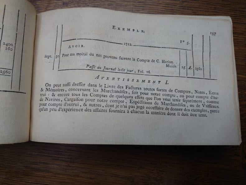 A Rouen, chez P. Machuel & J. Racine, 1782. 20,5 x 12,5 cm (format oblong), xvj - 757 pp. Reliure demi vélin d'époque, dos lisse, titre manuscrit partiellement effacé, dos avec manques, quelques pages avec légers sur les marges, sinon bon exemplaire. "Avec de la Porte, disait M. H. Deschamps en 1900, la Comptabilité prend la forme classique que nous lui connaissons, son traité ... ne fait pas trop mauvaise figure au milieu des production modernes." (Reymondin 89-90).