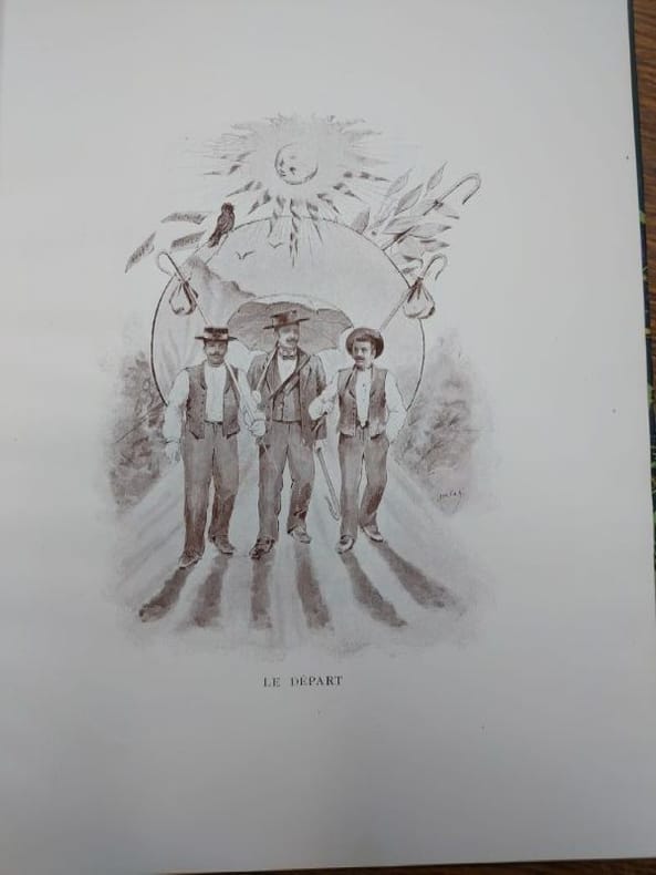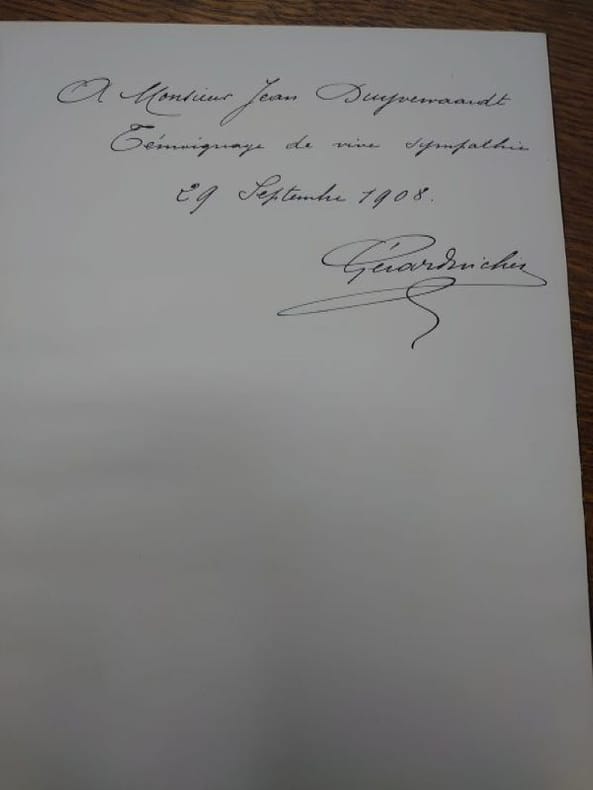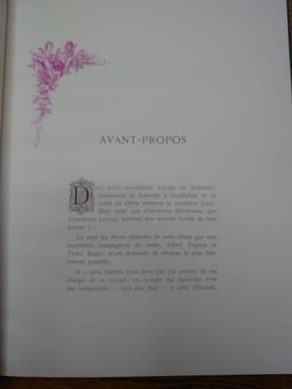 Bruxelles, Imprimerie Lithographie Richez, 1900. 28 x 22,5 cm, xv - 56 pp. et 3 ff. Reliure demi veau glacé, dos à nerfs, caissons ornés, titre doré, prolongations des nerfs sur les plats, tête dorée, couvertures conservées. Très bel exemplaire illustré de planches hors texte et de vignettes en couleur. Édition originale. Exemplaire numéroté 236 sans précision du tirage. Envoi autographe signé de l'auteur.
