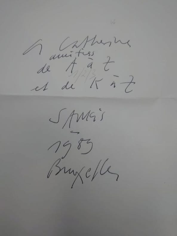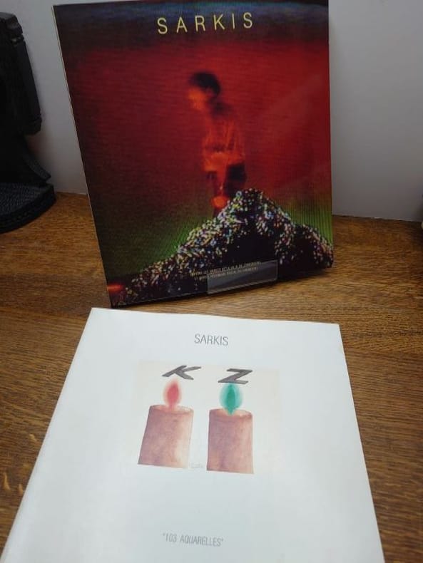 Strasbourg et Bruxelles, Éditions Musées de la Ville de Strasbourg, Lebeer Hossmann 1989. 28 x 25,5 cm, 115 pp. Broché en bon état. Nombreuses reproductions en noir et en couleurs. Catalogue de l'exposition organisée à Strasbourg et à Bruxelles en 1989. Joints avec un envoi de Sarkis : deux photographies originales de Sarkis, une photo d'une oeuvre de Sarkis "Le forgeron en masque de Sarkis en vert et rouge" à Autun et des invitations à des vernissages. Et le catalogue intitulé "103 aquarelles", édité par les éditions des Musées de la ville de Strasbourg et Lebeer Hossman Bruxelles-hambourg.