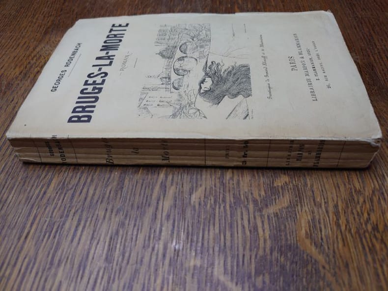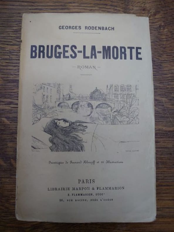 Librairie Marpon & Flammarion, 1892. 18,8 x 12 cm, 223 pp. Broché, petite déchirure au bas du dos el léger manque au coin haut de la couverture, sinon bel exemplaire exempt de rousseurs. Le frontispice annoncé est en fait la couverture illustrée par un dessin de Fernand Khnopff. Avec 35 similigravures. Édition originale.
