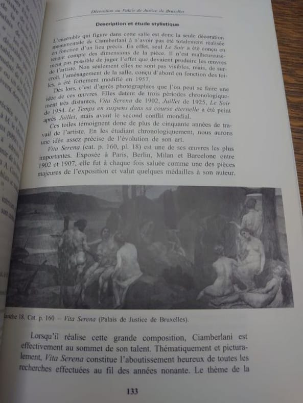 Académie royale de Belgique, Classe des Beaux-Arts, 1993. 25 x 16 cm, 238 pp. Broché sous jaquette illustrée. Avec 21 figures en noir et blanc in texte. Bel exemplaire. Issu d'un mémoire dirigé par Philippe Roberts-Jones, cette étude constitue le premier ouvrage jamais consacré à cet auteur de décorations murales d'esprit symboliste, dont l'oeuvre de chevalet demeure presque inconnu. L'ouvrage de Guy Vanbelligen apporte de nouvelles considérations sur les liens entre peinture et architecture ainsi que sur les rapports entre artistes et pouvoirs publics. Un essai catalographique enrichit cette monographie. Redécouverte dans les années soixante-dix, à la suite des expositions inaugurales sur le Symbolisme en Europe (1976) et Fernand Khnopff (1979), l'oeuvre d'Albert Ciamberlani (1864-1956) demeura néanmoins marginale, sans doute en raison de sa spécialisation qui délaissait le tableau au profit de la composition monumentale et du mur.En son temps, cet artiste était pourtant "aussi célèbre et apprécié que ceux qui sont aujourd'hui considérés comme les grands noms du symbolisme et de l'idéalisme belges." Avec ces derniers, il prit part aux débats importants, fut membre fondateurs de groupes novateurs, avant d'atteindre une "consécration qui se manifeste par des commandes publiques, par son accession au professorat dans un Institut supérieur des Beaux-Arts, par sa participation aux expositions officielles d'art belge à l'étranger ou encore par son entrée à l'Académie royale de Belgique."