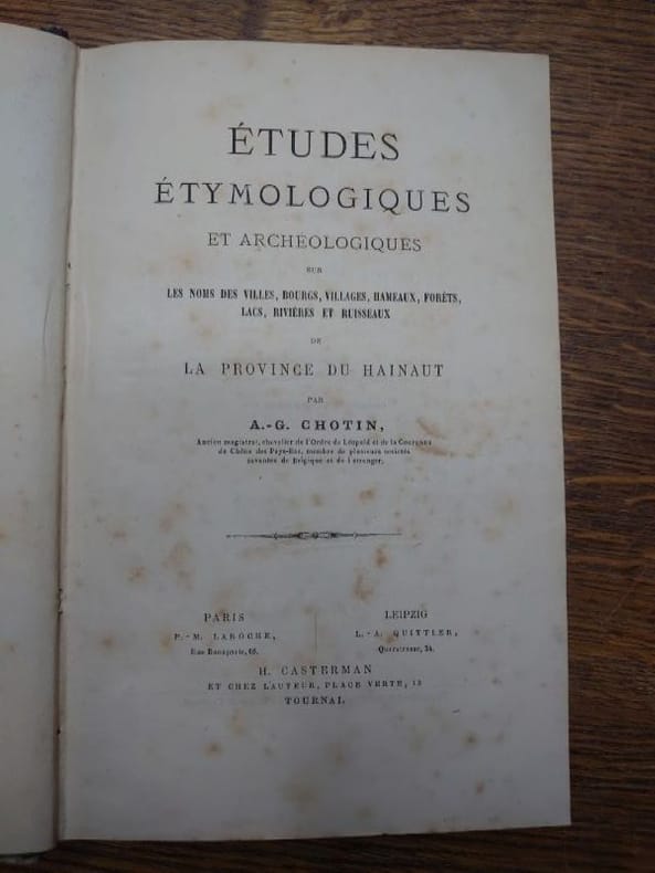 2. Tournai, H. Casterman ( Paris/ Leipzig - Laroche - Quittler ), s.d. ( 1867 ) in-8°, 491 pp, relié en demi-maroquin brun, reliure avec des traces minimes d'usage. Bel exemplaire de l'édition originale. ( Hainaut - etymologie - dictionnaire - archéologie ) .