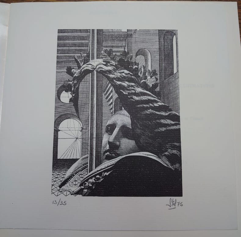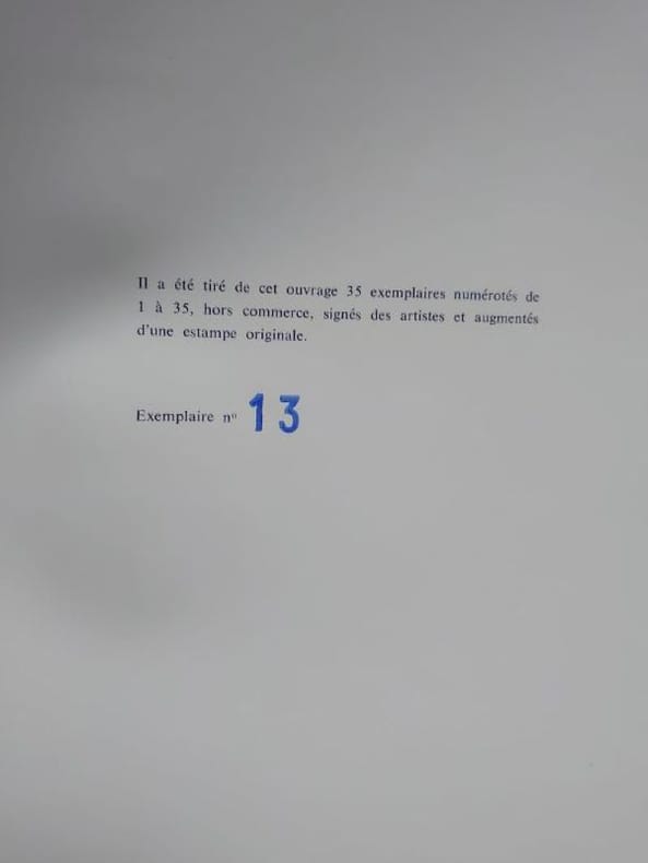 21 x 21 cm, 15 pp. Plaquette agrafée en bon état. Un des 35 exemplaires numérotés hors commerce signés des artistes et augmentés d'une estampe originale numérotée et signée par André Stas.