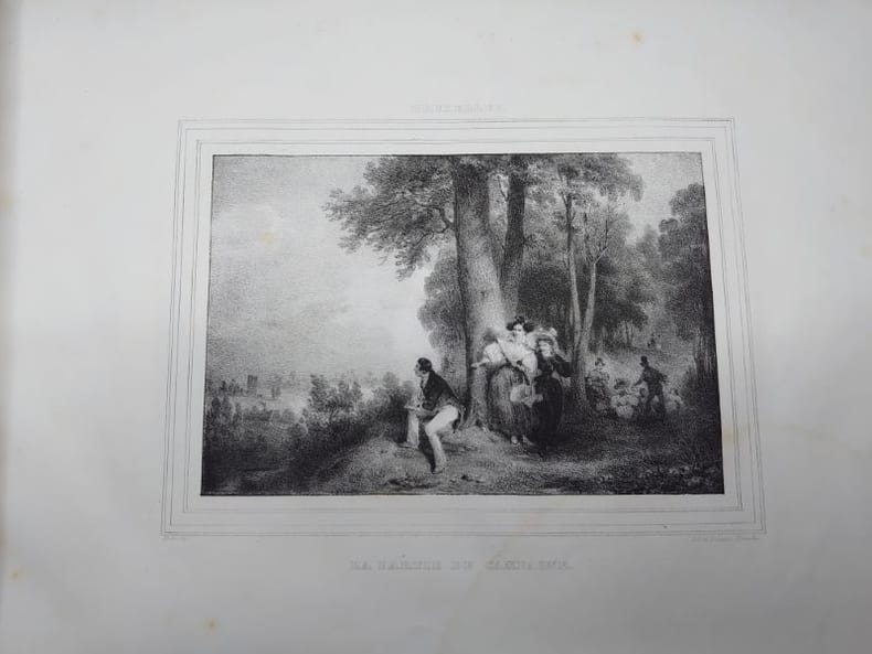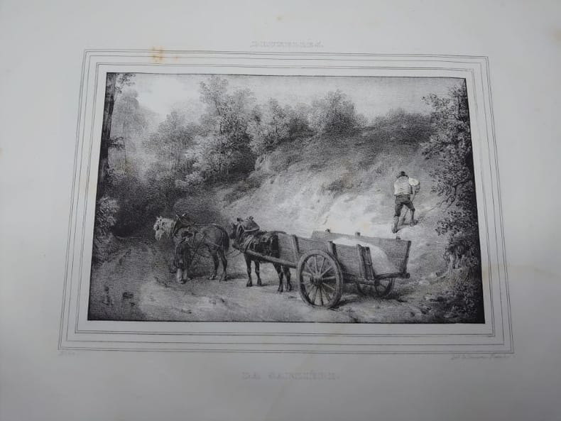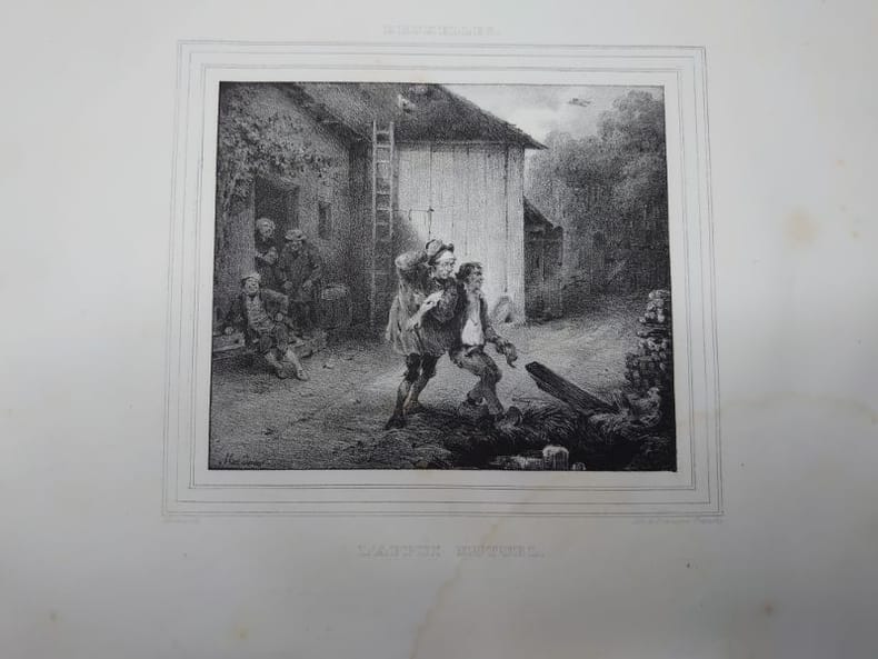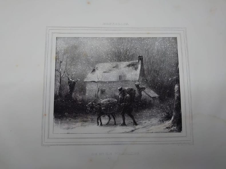 Lith. de Dewasme-Pletinckx, sans date [1831?]. 33 x 26 cm, 12 planches lithographiées noir et blanc, sous serpentes. De nombreuses rousseurs et mouillures claires, sinon bon exemplaire de ce rarissime recueil. Jean-Baptiste Madou, né le 3 février 1796 à Bruxelles où il meurt le 3 avril 1877 (à 81 ans), est un peintre, illustrateur, lithographe et aquafortiste belge. Madou était membre de la Société des agathopèdes.