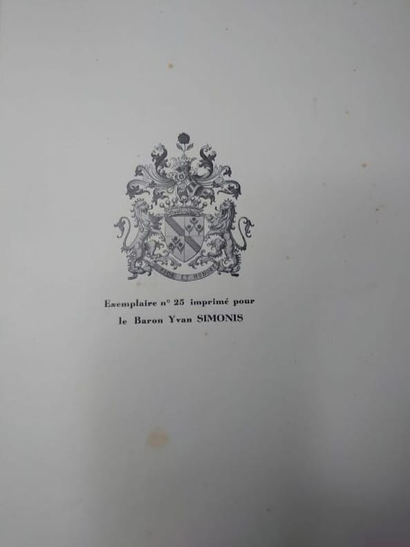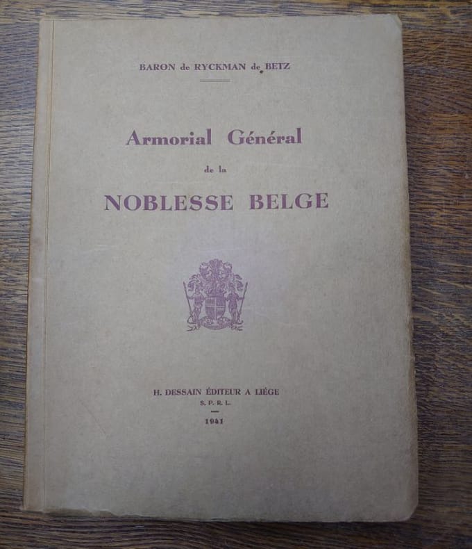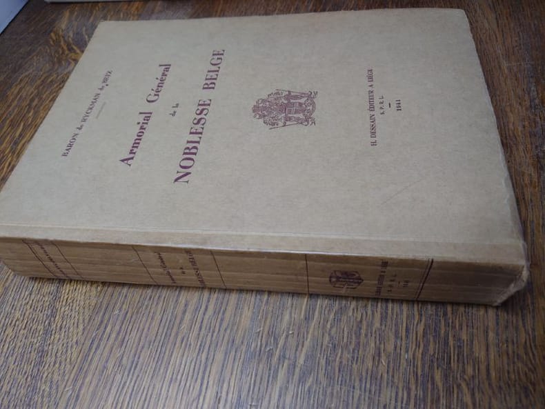 H. Dessain, Éditeur, Liège, 1941.Un fort volume broché (21 x 28 cm) de xiii-769 pp. Couverture en papier fort. Exemplaire en bon état.Ouvrage imprimé à 1000 exemplaires dont 300 numérotés. Le notre un des 300 exemplaires numérotés, imprimé pour le Baron Yvan Simonis. Très nombreuses reproductions d'armoiries en noir et blanc.