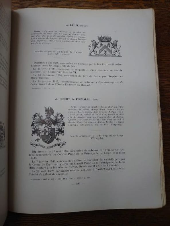 H. Dessain, Éditeur, Liège, 1941.Un fort volume broché (21 x 28 cm) de xiii-769 pp. Couverture en papier fort. Exemplaire en bon état.Ouvrage imprimé à 1000 exemplaires dont 300 numérotés. Le notre un des 300 exemplaires numérotés, imprimé pour le Baron Yvan Simonis. Très nombreuses reproductions d'armoiries en noir et blanc.