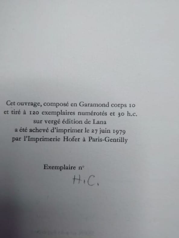 Tirage limite. Tirage de 30 exemplaires h.c. sur verge edition de Lana.
