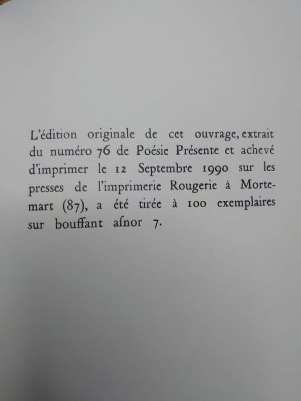 Rougerie, 1990. 22,5 x 14 cm, non paginé. Broché en bel état. Édition originale, un des 100 ex. sur bouffant. Envoi autographe signé de l'auteur.