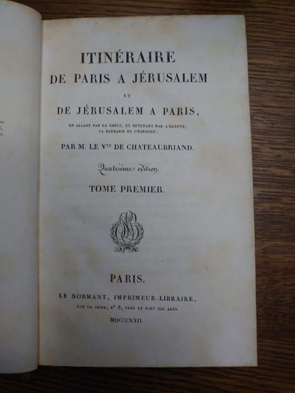 Chateaubriand Itinéraire de Paris à Jérusalem et de Jérusalem à Paris 1812