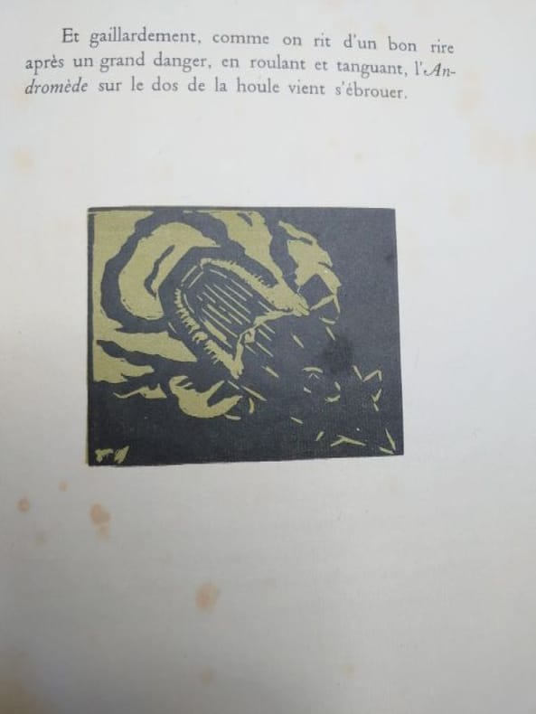H. Floury, impr. Frazier-Soye, à Paris 1919 Ouvrage imprimé à 800 exemplaires numérotés. 1/750 sur Vergé d’Arches. In-4 19 x 27 cm. Broché sous couverture rempliée, vignette du titre contrecollée sur le premier plat, 22 pp., 10 bois. Exemplaire en bon état.