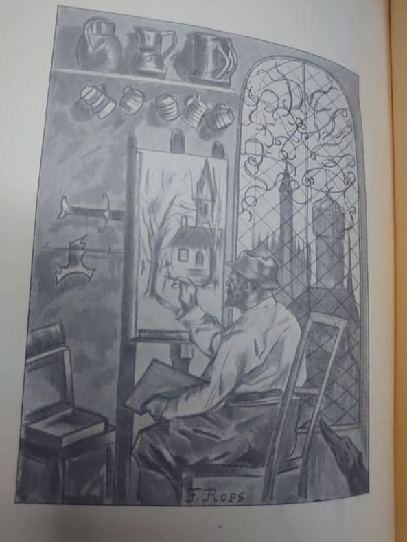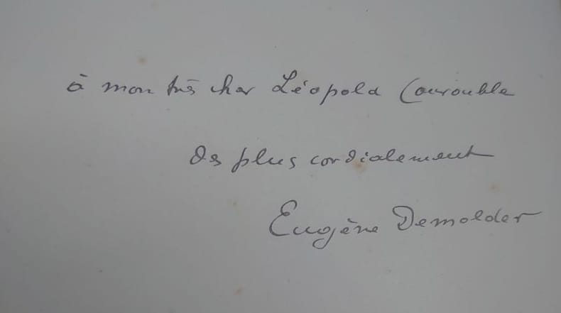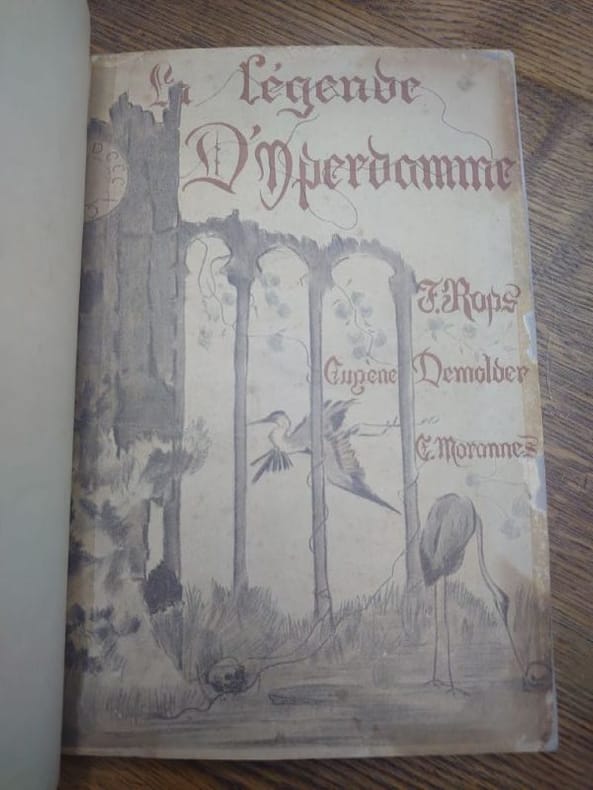 Paris, Édition du Mercure de France, sans date [1896]. 29 x 20 cm, 151 pp. Reliure moderne demi chagrin à coins, dos à nerfs, titre doré, couvertures conservées. couvertures en état moyen sinon bon exemplaire. Exemplaire du tirage courant avec un envoi autographe signé d'Eugène Demolder à Léopold Courouble.