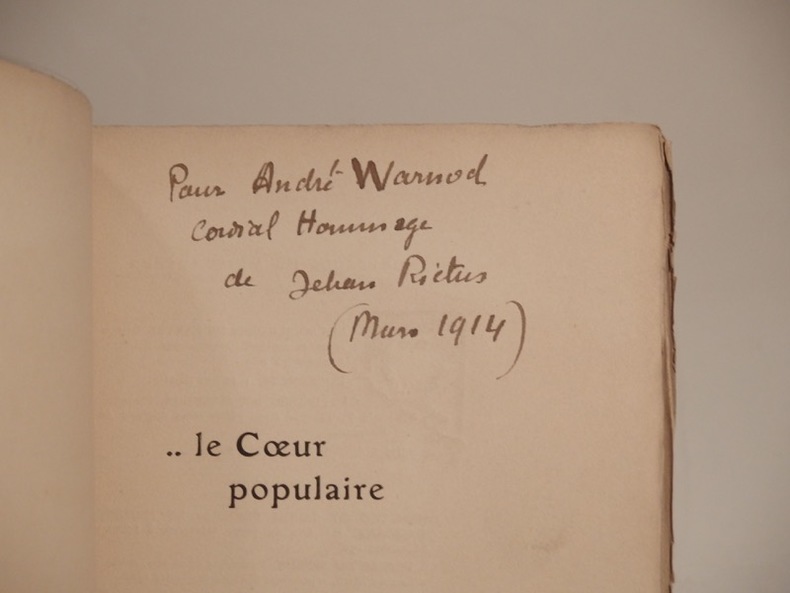 Edition originale, un des 1000 exemplaires sur vélin (non justifié, après 125 Japon). ENVOI autographe signé de Rictus à André Warnod, daté mars 1914. * Voir photographie(s) / See picture(s). * Membre du SLAM et de la LILA / ILAB Member. La librairie est ouverte du lundi au vendredi de 14h à 19h. Merci de nous prévenir avant de passer,certains de nos livres étant entreposés dans une réserve.